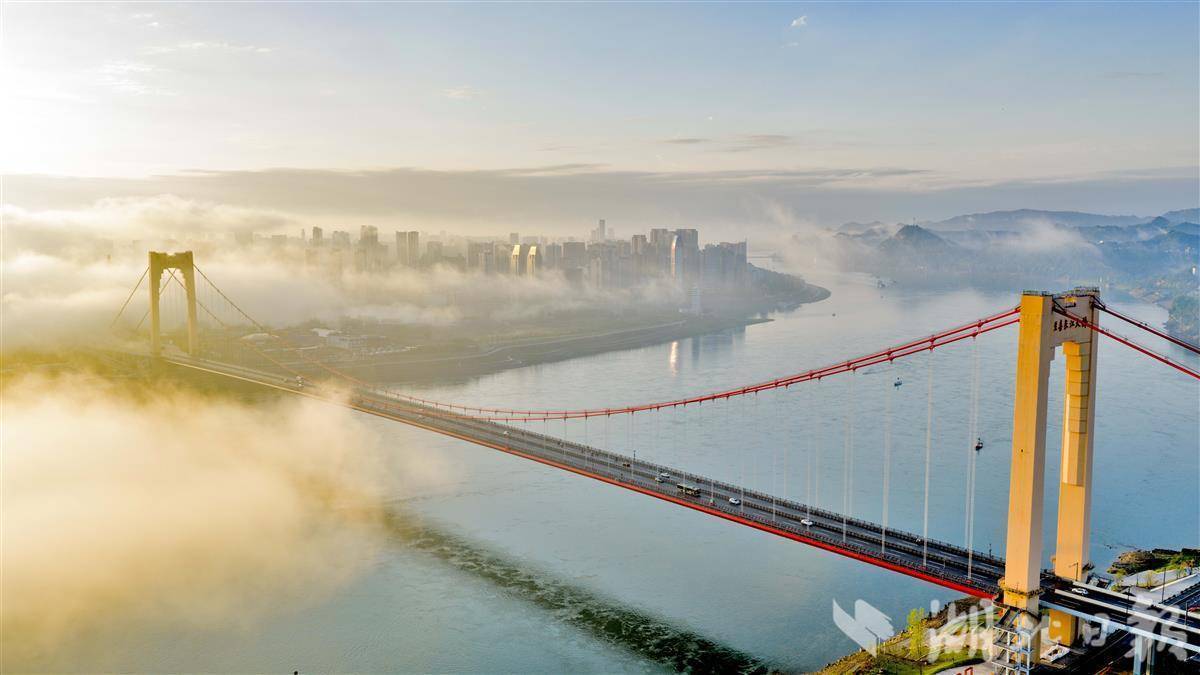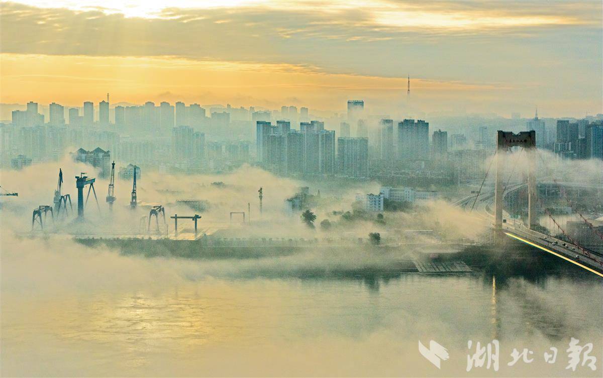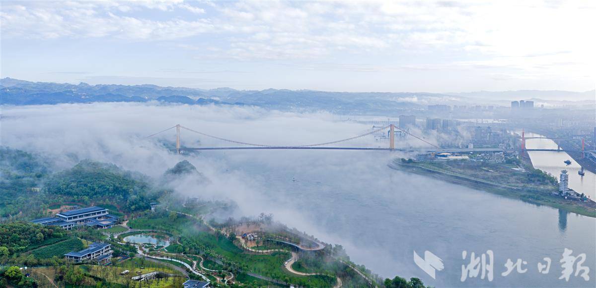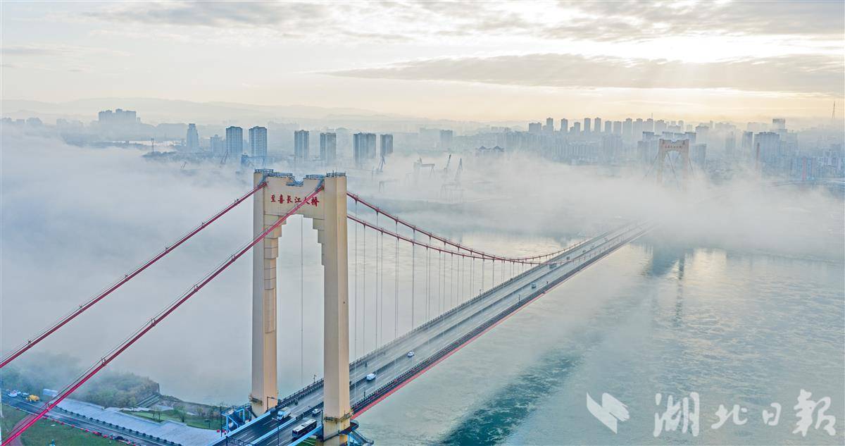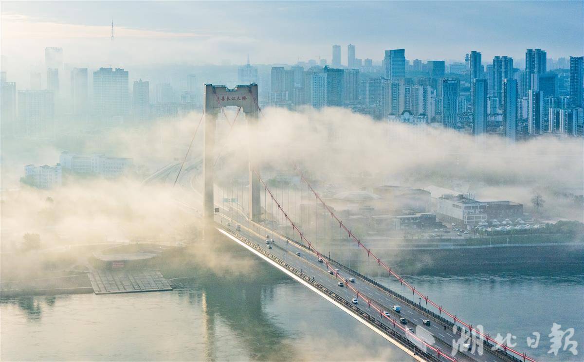 4月12日清晨,连日降雨后的宜昌城区云雾缭绕,空气清新。城区地标至喜长江大桥在薄雾与水汽中若隐若现,桥身与江面相映成趣,呈现出如梦似幻的水墨意境,成为雨后江城一道独特的风景线。(湖北日报全媒记者 刘曙松 摄)