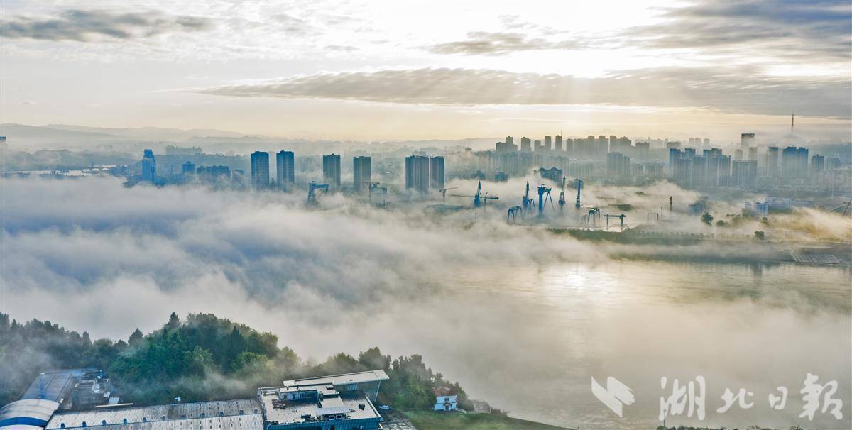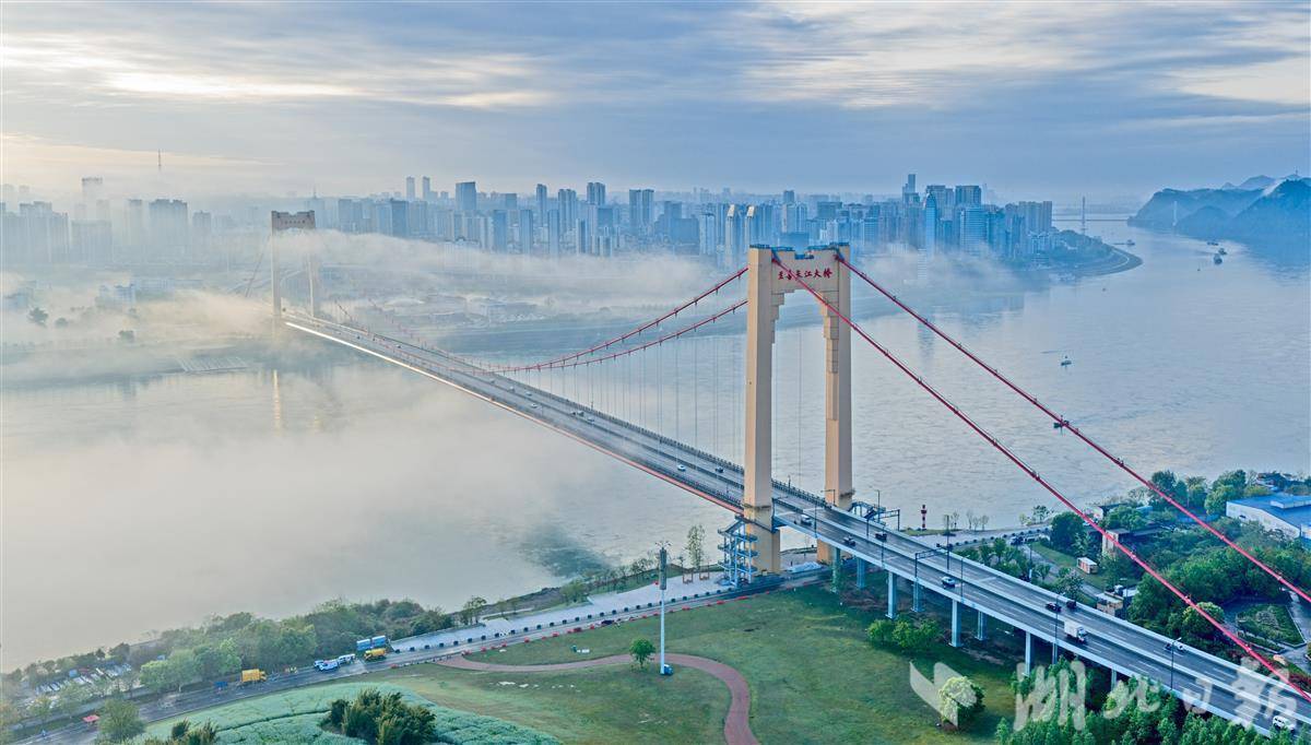 雨后宜昌云雾绕,至喜大桥若隐若现。
